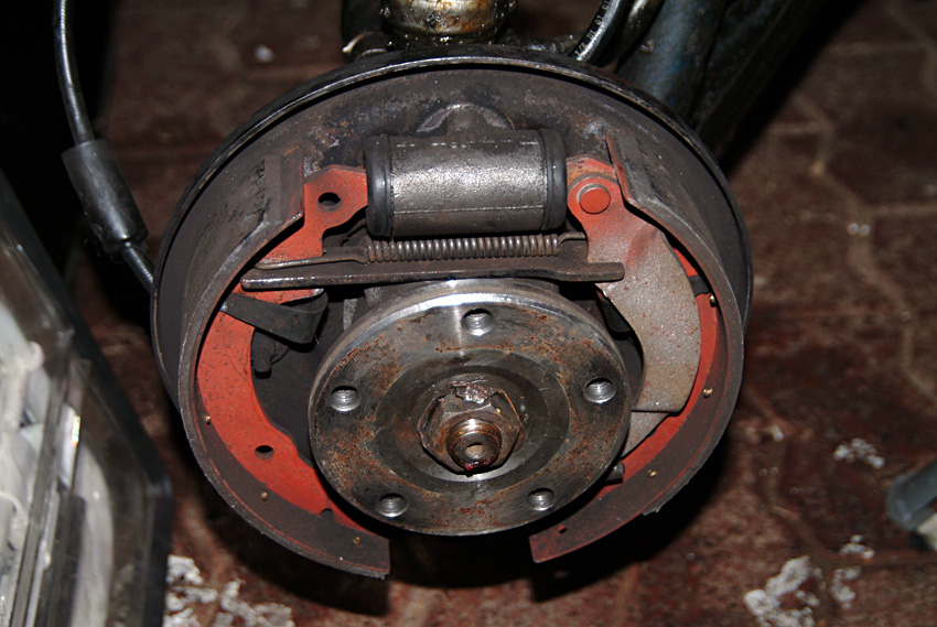 Also habe ich den Bremszylinder ausgebaut, zerlegt und wieder gangbar gemacht — unter kräftiger Mithilfe von Herrn Gapri. Nach Einbau des überarbeiteten Bremszylinders wurde die Bremse noch exakt eingestellt — und nun funktioniert alles wieder bestens.