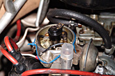 Bei seinem Schrauberbesuch hier in Franken im letzten Herbst hatte Florian festgestellt, dass die Unterdruckdose des Verteilers an meinem Auto defekt war. Da hatte sich die Verlötung der Druckdose mit ihrer Halterung gelöst.
