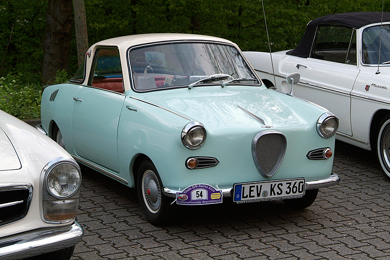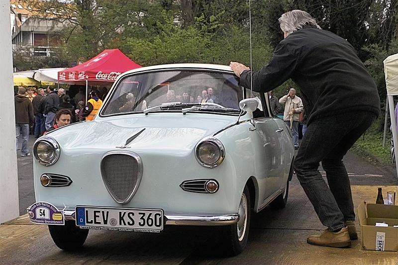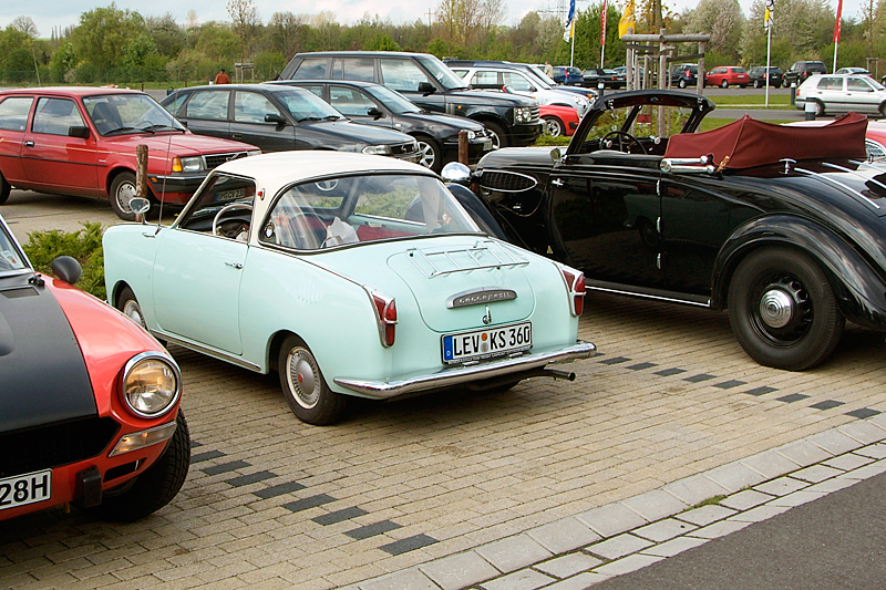 Leider war mein Panhard nicht rechtzeitig zu dieser Veranstaltung fertig geworden, die im Herbst angefangene Reparatur des Getriebes konnte nicht termingerecht abgeschlossen werden. Zum Glück aber stellte mir mein Freund Stefan Klinkenberg sein schönes Goggo Coupe zur Verfügung - als großzügiges Dankeschön für meine Mithilfe bei der Reparatur seines eigenen Panhard 24 ct.