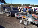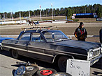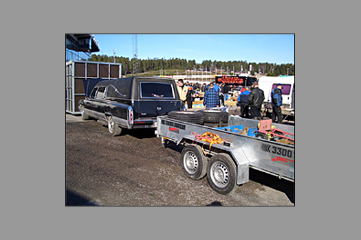 ... ob Beerdigungs-Cadillac mit Anhänger (jeder Finne hat mindestens einen Anhänger, selbst wenn er gar kein Auto hat), oder Holzskier auf dem Dach — man weiss ja nicht, wie das Wetter auf der Rückfahrt wird ...