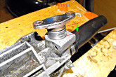 Das verfluchte Lenkungsritzel will doch partout nicht mehr richtig ins Gehäuse. Bis zu den Halbschalen ist alles kein Problem, dann aber hakt es. Inzwischen habe ich die Ganze Sache 3 x wieder aus- und neu zusammengebaut, leider aber ohne jede Änderung des Problems. Wenn man ganz gewalttätig ist und das Ritzel mit sehr viel Kraft eindrückt, kommt es zwar bis in die richtige Position, dann aber lässt es sich praktisch nicht mehr drehen.